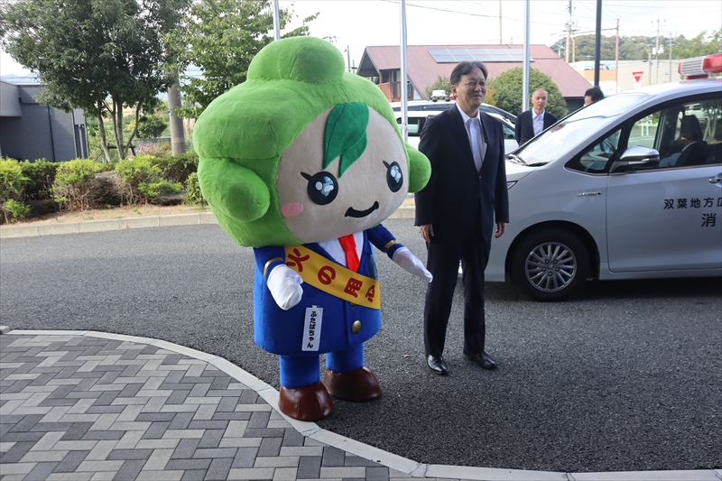 令和7年9月26日(金)総務省消防庁の大沢博長官が当消防本部管内を訪れ、双葉消防本部職員へ対し激励をいただきました。