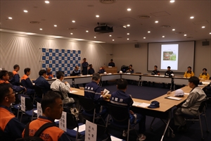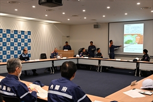 各関係機関代表者が大熊町役場本庁舎2階会議室に集まり、災害概要の情報共有を図り、各隊の活動役割を確認しました。