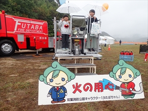 令和7年10月11日(土)川内村田ノ入工業団地内で 「ふたばワールド2025 inかわうち」が開催され、露店消防検査および出展協力しました。