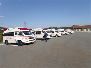 福島県の要請を受け、県内7医療機関からDMATが集結し、ふたば医療センター附属病院内の応急救護所で、医療処置を行うとともに、各医療機関と連携し、収容医療機関の調整を行いました。さらに、救出に時間を要す負傷者に対し、現場での医療処置を行うため、医師と看護師が救急車の同乗し、災害現場で医療処置を行いました。