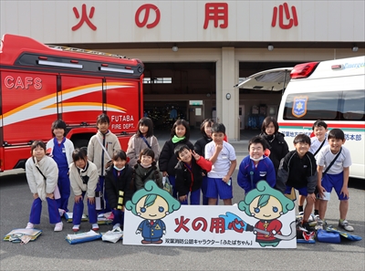 令和7年11月26日、広野町立広野小学校の児童(3年生)17名が富岡消防署楢葉分署にて消防署見学をおこないました。