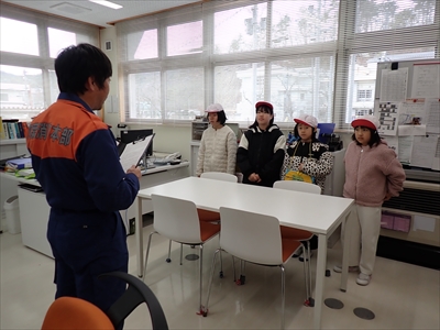 施設見学や車両見学を通して、勤務状況や業務内容、災害活動時の対応など、普段から疑問に思っていたことについて多くの質問があり、真剣に学習していました。