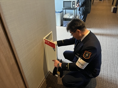 初期消火に有効となる消火器の維持管理状況について、確認を行ってきました。繁忙期は、消火器や屋内消火栓の前に商品が陳列される場合があるため、注意喚起を実施しました。