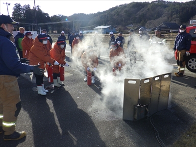 川内村婦人消防隊が、消火体験装置Kesuzoを使用した水消火器の取扱訓練を実施しました。