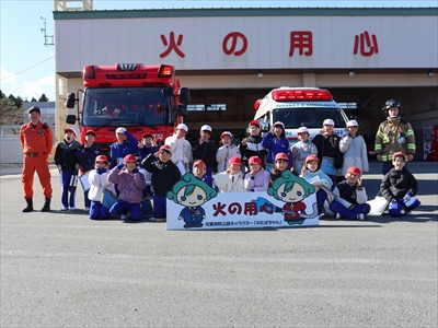 火災の多くなる時期を迎えるため、葛尾村立葛尾幼稚園幼年消防クラブ員が防火パレードを行い火災予防を呼びかけました。