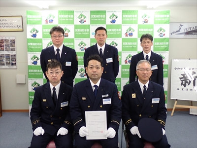 感謝状贈呈式では、金澤文男消防長が6名の懸命な初期消火活動等により甚大な林野火災に発展せず、地域の不安を取り除いたその功績をたたえました。