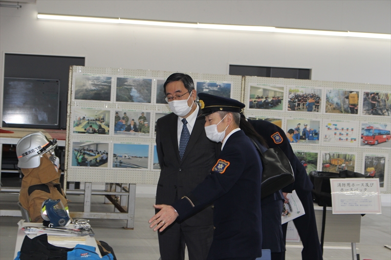 「職員皆様が地域住民の生命や財産を守るという遂高な使命のもと災害への備えを万全にしている姿を拝見し、非常に心強く感じました。引き続き双葉消防本部の消防体制の充実強化を支援し、職員の皆様が安心して消防活動が行えるよう力を尽くしていく所存です。」と励ましのお言葉をいただきました。