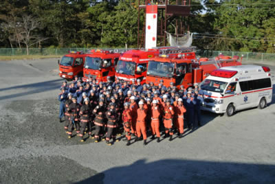 平成26年11月4日(火)、平成26年度原子力災害避難指示区域消防活動費交付金を受け富岡消防署楢葉分署の救助訓練塔が完成、訓練塔供用開始式として演習査閲を行いました。