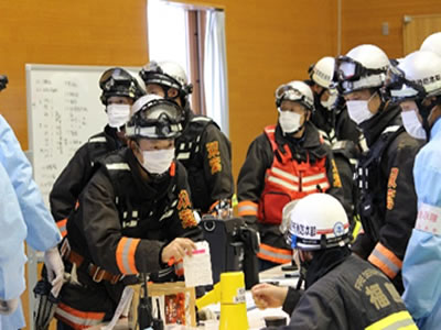 また、総務省消防庁からも視察に訪れ、訓練終了後に開催した意見交換会において、本訓練を含め、有事の際の対応について情報交換を行いました。