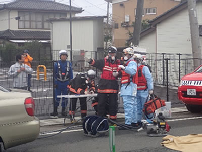 DMAT(災害派遣医療チーム)による収容された傷病者への処置@