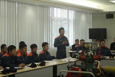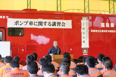 「採用5年未満の職員が約3割となっており消防ポンプに関する知識及び技術の習得が急務な状況にあります。構造を理解し、不測の事態の対応をしっかり身に付けてください。」とあいさつをいただきました。