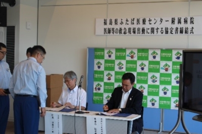 平成30年8月21日(火)に福島県ふたば医療センター附属病院医師等の救急現場出動に関する協定書締結式が行われました