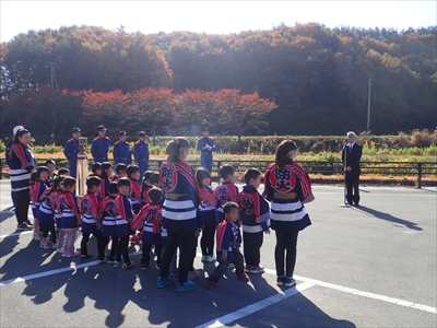 終了式では、松野川内出張所長、秋元教育長、井出婦人消防隊長が労いの挨拶をいただき、その後、園児たちが「火遊びは絶対にしません。」と防火の誓いを大きな声で誓ってくれました。