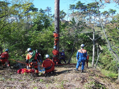 崖下にいる要救助者を、安全な場所まで救出する訓練を行いました。