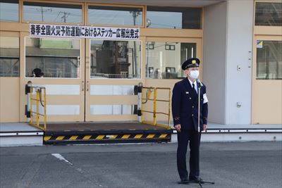 令和3年3月1日(月)、浪江郵便局にて春季全国火災予防運動におけるステッカー広報出発式を行いました。