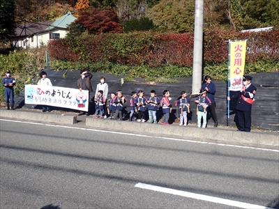 みどりの里広場から浪江消防署葛尾出張所まで元気いっぱいに地域住民へ火災予防を呼びかけました。