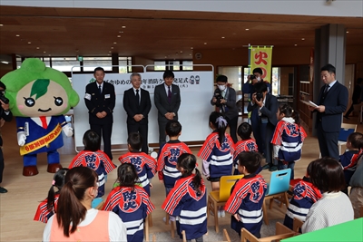 大熊町認定こども園学び舎ゆめの森幼年消防クラブ発足式が開催されました。