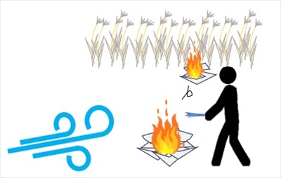 たき火中に火災となり、消火するものがなく、周囲へ延焼拡大したもの。