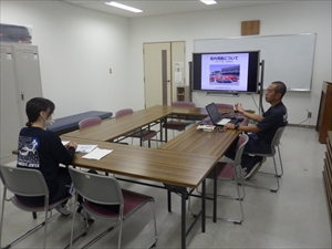 ⑦予防業務について理解を深めるため、予防係長による講義を受けて頂きました。 管内の火災発生状況や、医療センター内の消防用設備について理解を含めました。