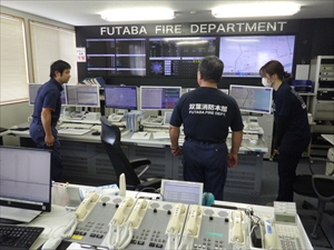 ①楢葉分署長から、双葉管内の情勢について講義を実施しました。震災急性期の消防活動から現在までの経過、管内の復興と消防の関わりについて理解を深めました。