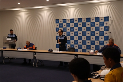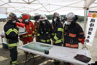 各関係機関代表者が大熊町役場本庁舎2階会議室に集まり、災害概要の情報共有を図り、各隊の活動役割を確認しました。