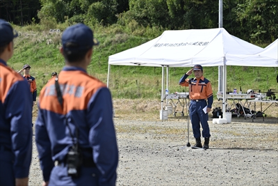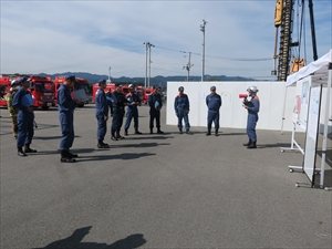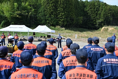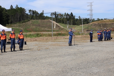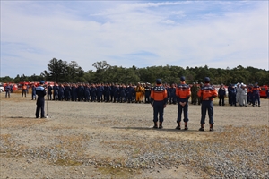 開催地代表の双葉消防本部金澤文男消防長が御礼挨拶を述べました。本訓練を通し、関係機関との連携強化および共通認識を深めることが出来ました。今後は、火災発生の未然防止並びに被害軽減に努めて参ります。
