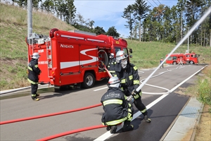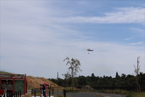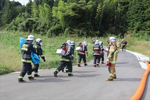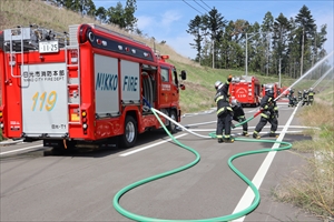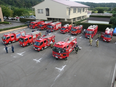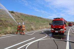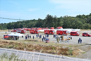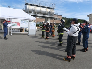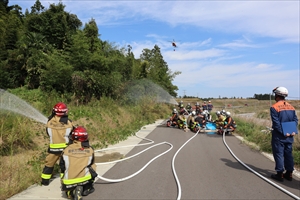 各応援隊は、消火訓練会場の指揮所へ集まり、活動指示を受けた後、各消火活動へ移行しました。