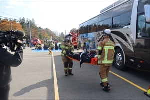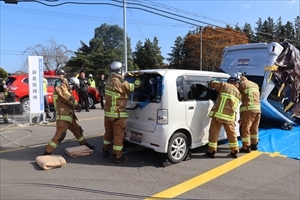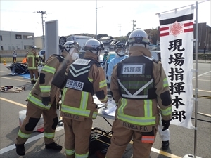 大型バスと大型トラックの衝突時に巻き込まれ、普通車2台が絡む合計4台の事故が起こり、19名の負傷者が発生。浪江消防署より指揮隊が出動し、災害現場に指揮本部を立ち上げ災害の全容を把握。双葉消防本部だけでの災害対応が困難と判断し、県内消防本部へ「避難指示区域での多数傷病者発生における広域応援要請」を行うとともに、富岡町にある福島県ふたば医療センター附属病院へ負傷者の一時受入要請を行う。