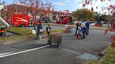 実際の火を消火し、消火器の使用方法、現場の臨場感を体験してもらいました。多くの子供たちが消火器の使用方法を知っており、積極的に消火訓練を行っていたのが印象的でした。