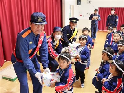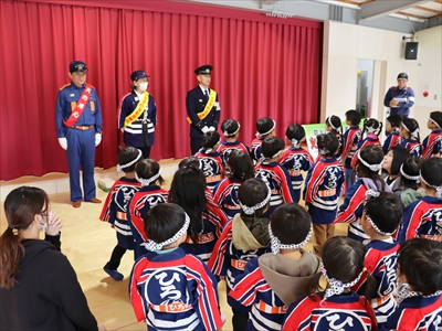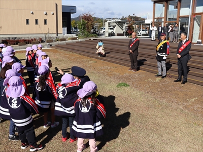 園児たちは元気いっぱいに「火の用心」と誓いの言葉を述べてくれました。