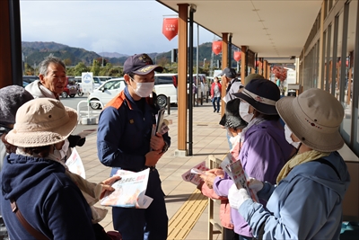 笑ふるタウン内で防火チラシを住民の方々へ配布し、火の用心を呼びかけました。