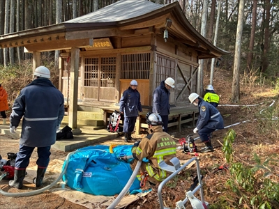 令和8年1月25日 文化財防火デーに伴う消防訓練を川内村虚空蔵堂で実施しました。