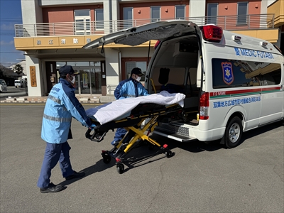 この救急車には、最新の除細動器や心電図モニター、リアガラスにブラインド型車両搭載情報板などが搭載されているほか、当消防本部では初めて電動ストレッチャーを導入しました。