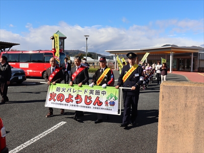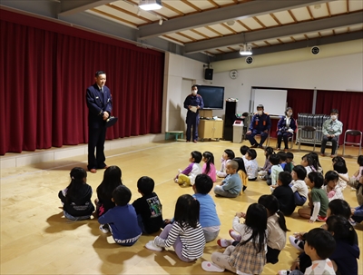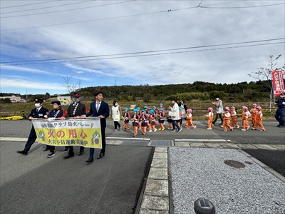 令和7年11月10日(月)秋季全国火災予防運動の一環として、楢葉町立あおぞらこども園幼年消防クラブが防火パレードを実施しました。園児達が、拍子木を打ち鳴らしながら、地域住民に火の用心を呼びかけました。