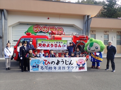 火災の多くなる時期を迎えるため、葛尾村立葛尾幼稚園幼年消防クラブ員が防火パレードを行い火災予防を呼びかけました。