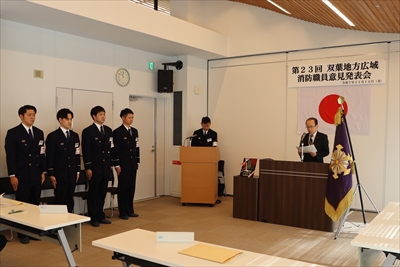 双葉地方広域消防職員意見発表会は、今回で23回目を迎え、当消防本部職員が日頃の消防業務を通じて体験したこと、消防防災に対する考え方や発展性を発表することによって、人間性豊かな消防職員を育成し、併せて消防行政に対する地域住民の理解を得ることを目的とし開催しています。